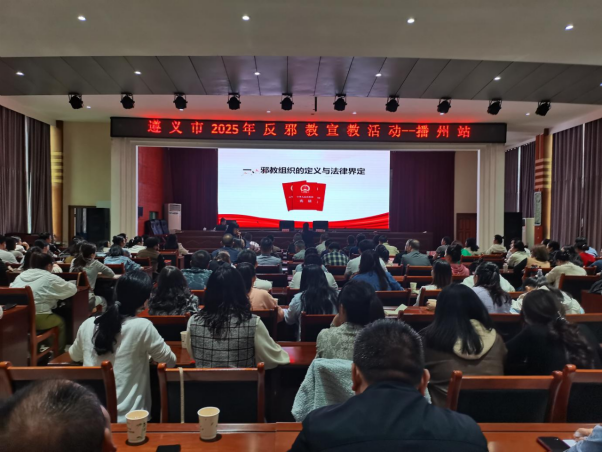 为深入普及反邪教知识,营造崇尚科学、反对邪教、文明和谐的社会环境,使广大人民群众广泛知晓邪教危害、认清邪教本质,自觉反对和抵制邪教,切实筑牢反邪教安全防线。9月25至26日,在2025年全国科普月活动期间,由贵州省反邪教协会、遵义市科协、遵义市反邪教协会主办,汇川区科协、遵义师范学院、播州区科协承办的2025年遵义市反邪教巡回宣教活动顺利开展。活动在汇川区航宇社区、遵义师范学院、播州区桂花桥街道办分别开展专题讲座。活动覆盖街道办、社区居委会干部群众、高校师生等600余人参加。