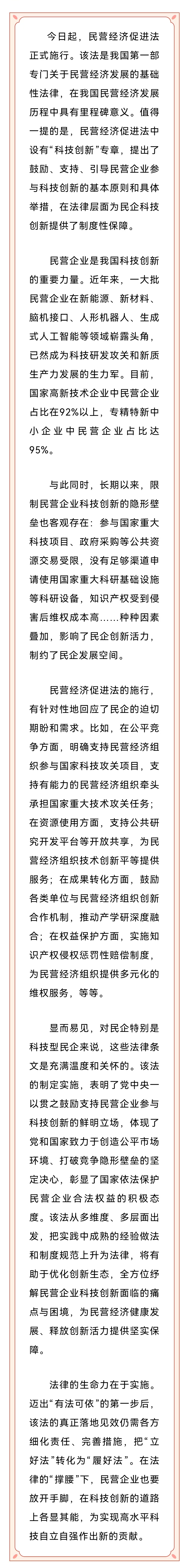 科技日报|法律“撑腰”,民企科技创新更有底气