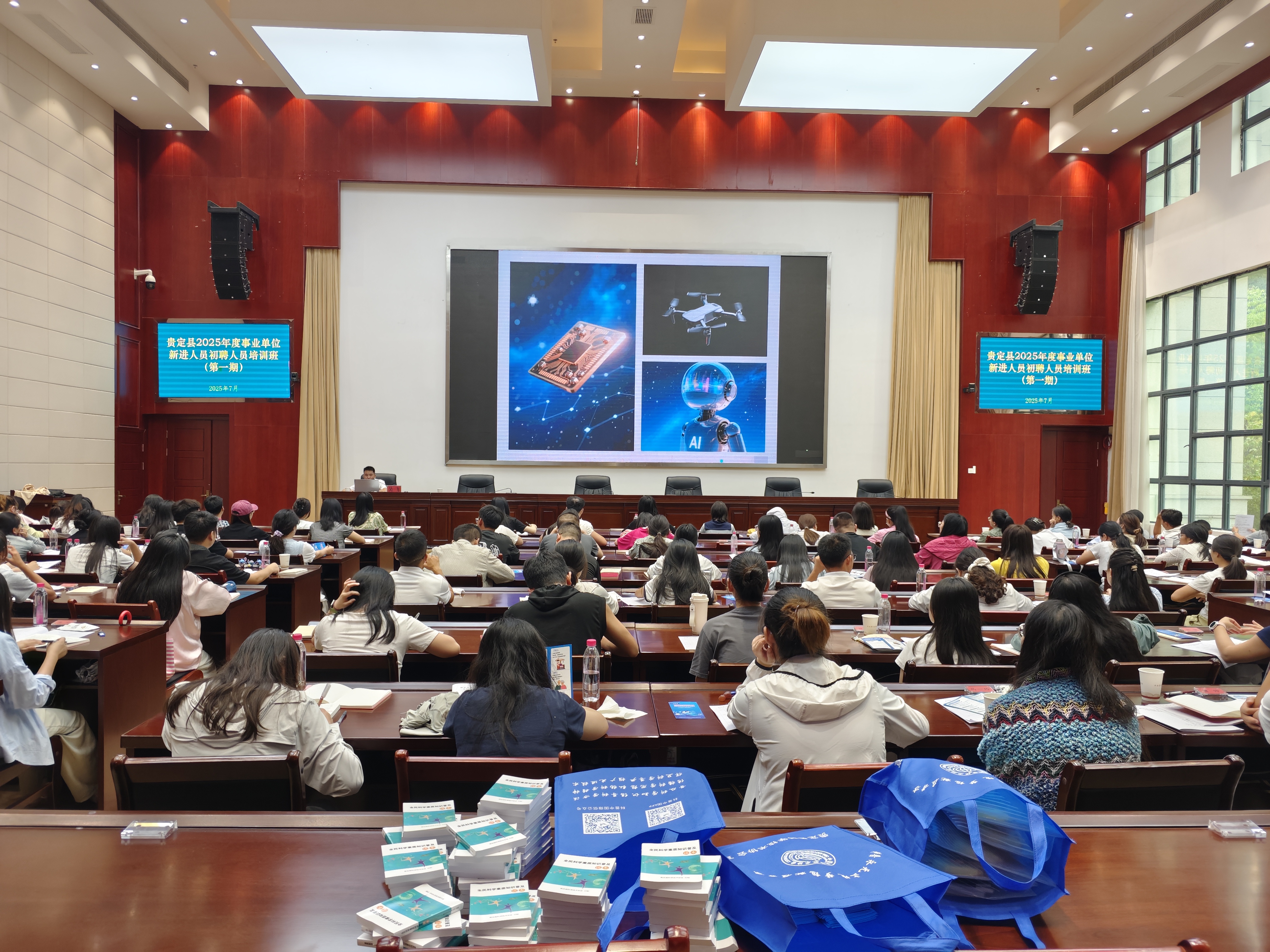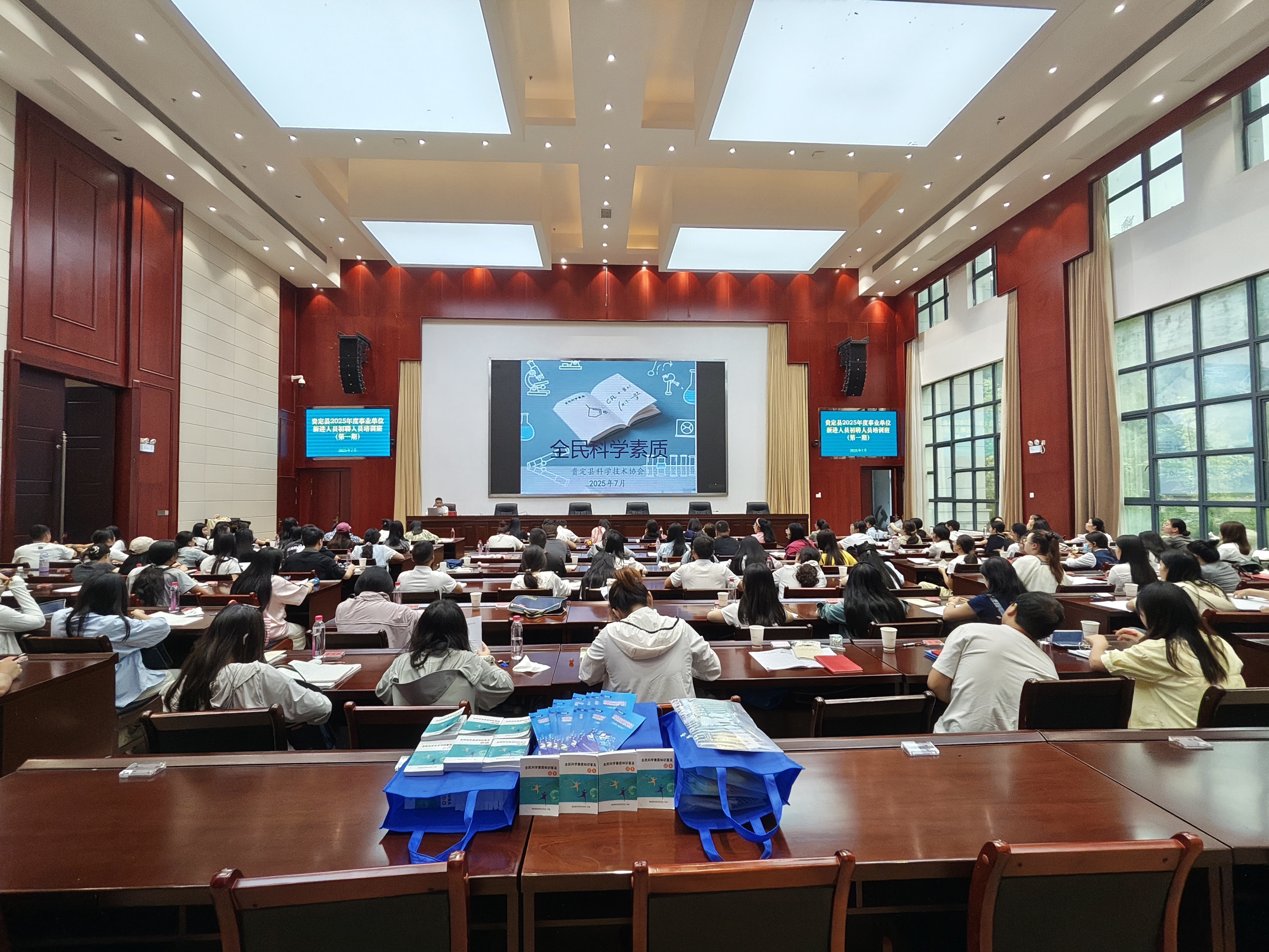 为帮助新入职事业单位人员夯实科学素养基础,提升履职能力和科学思维水平,7月23日,贵定县科学技术协会联合县委党校,精心策划并成功举办了面向全县新进事业单位人员的全民科学素质提升专题培训班。本次培训创新采用“系统授课+实用书籍+趣味答题”模式,为学员们送上了一份贴心的科学“成长礼”。