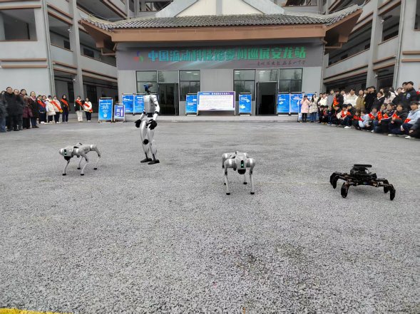 值得关注的是,本次展出的63件展品均为中国科技馆2025年更新的最新展品,直接从生产厂家运抵安龙一中,实现了“新品首发、直达基层”,让安龙群众率先体验到前沿科普成果。开馆活动结束后,出席活动的领导与师生代表移步两大展区,近距离体验科技魅力。科普志愿者全程提供讲解服务,现场展示了四足机器人、双足人形机器人、六足蜘蛛仿生机器人等特色展品,灵活的动作、有趣的互动引得现场阵阵欢呼。