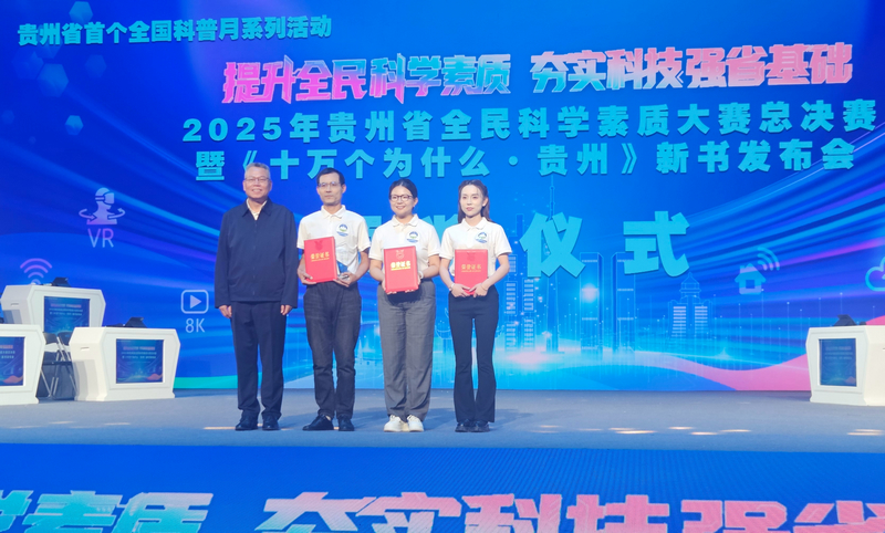9月25日,2025年贵州省全民科学素质大赛总决赛暨《十万个为什么·贵州》新书发布会在贵阳举行。本次全民科学素质大赛总决赛以“提升全民科学素质 夯实科技强省基础”为主题,汇聚了来自全省9个市(州)及自然资源、交通、卫健等行业的12支代表队,近200名嘉宾、选手与观众参与。