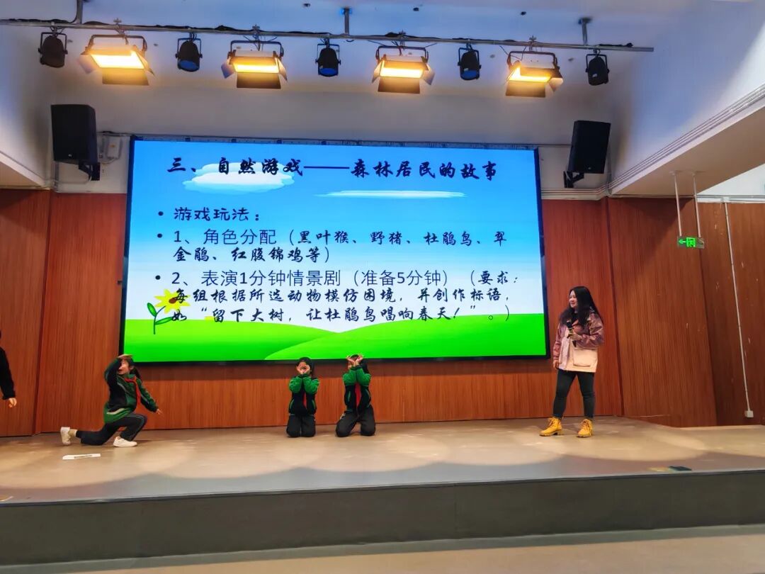 活动中,贵州省林业调查规划院副主任杨雪以“守护宽阔水的生灵”为主题,通过播放高清生态纪录片、幽默风趣的互动讲解及趣味动物模仿游戏,带领学生沉浸式探索宽阔水国家级自然保护区的独特生态。课程内容涵盖珍稀动植物、生态保护等知识点,引导学生观察自然细节,培养敬畏生命、爱护自然的情怀。课堂设置互动问答环节,通过授课,启发同学们树立“人与自然和谐共生”的科学价值观。
