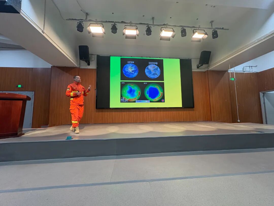 第二阶段,贵阳市林火防控中心教员甘美以“地球环境变化与森林防火”为主线,结合近年典型火灾案例、动态模拟动画及火场逃生知识,系统讲解森林火灾的成因、危害及科学防范措施。课程重点演示“小火快跑、大火避险”“遇烟弯腰捂鼻”等实用逃生技能,强化学生安全防范意识。