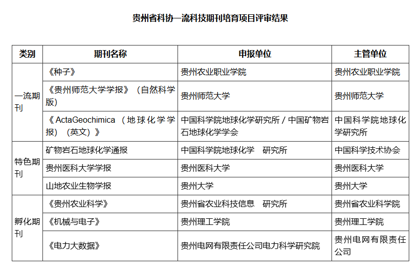 附件:贵州省科协一流科技期刊培育项目评审结果